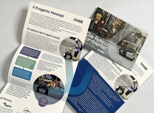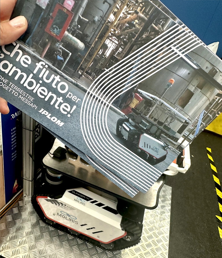 Il drone terrestre e il pieghevole che abbiamo realizzato per spiegare le caratteristiche del progetto.